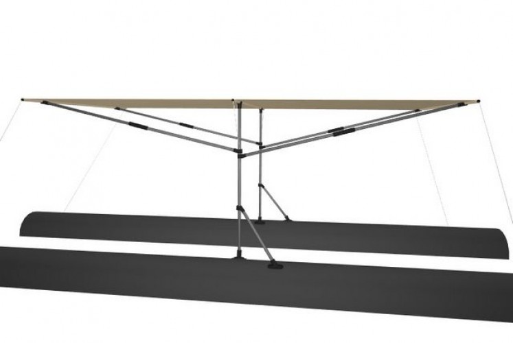 Despite the lightness and large size, all the awnings of the BOTHAUS are running and are capable of withstanding storm winds (tested repeatedly in practice). The fact is that the design uses yacht methods - a system of triangles that perfectly distribute the load. And since the aerodynamic resistance of the tents is minimal, that's the perfect result.