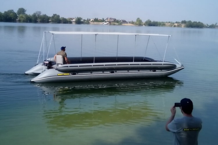 Powerful transverse frames are used for body rigidity, and the transom has a maximum thickness of 48 mm. It's hard to believe, but an engine with only 6 hp. enough for a confident and very economical movement: with one captain, he accelerates TRAVEL XXL 860 to 18 km / h, with 10 passengers - 12 km / h, and with a full load - 8 km / h. This is the merit of solid cylinders of a special hydrodynamic shape. If you need a reserve of power and speed, then the motor is 15 - 20 hp. will be more than enough.