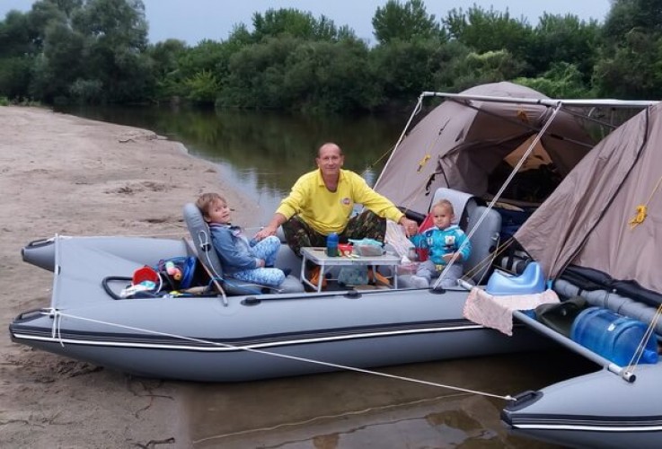 FISHER has personal comfortable chairs, tables, sun and rain awnings, fishing and recreation equipment, sailing equipment, side platforms with tents! If you decide to spend a week on fishing or even a whole vacation, just add one or several side platforms with tents to your catamaran (depending on the number of people on board). And then you can fish, travel and live on the water as you like with incredible comfort. In a few minutes, a high-quality two-layer tent is set up directly on the catamaran or on the side platform. Sleeping on the water is very comfortable - warm, soft and comfortable. In this case, you are in complete safety. With the FISHER catamaran, you gain complete independence from the on-shore parking spots. And choose your own routes!