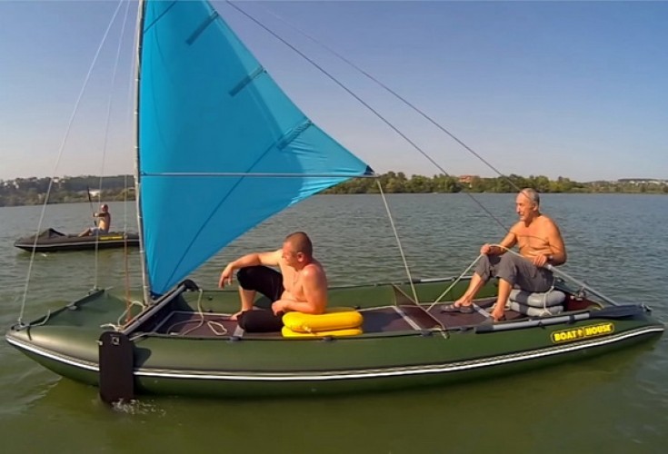FISHER inflatable catamarans until the last restyling were called TRAVEL. After the inflatable sailing catamaran of numerous requests from customers, the front locker was made more capacious (300 l) and waterproof. As a result, the design turned out to be identical to SMART-FISHER and SEA FISHER, except for the diameter of the cylinders and overall dimensions. Moreover, these catamarans were liked not only by tourists, but also by fishermen and hunters.