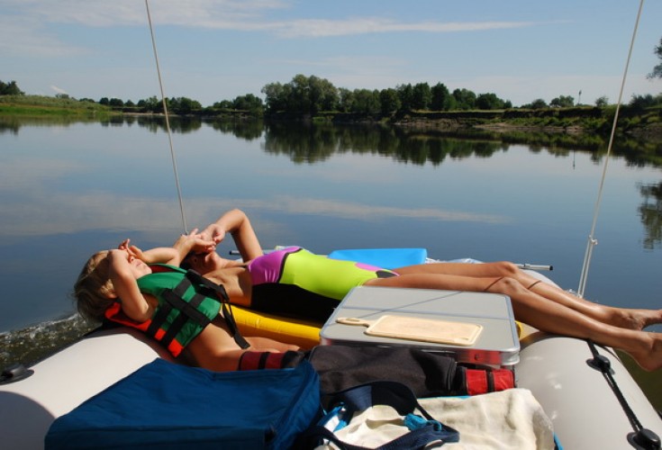 The first cockpit (captain's) is 197 cm long and almost one and a half meters of used width. This is quite enough for the comfortable location of several travelers and their property. Do not forget about the front luggage compartment. But this is just one of the options for using this boat. Two large identical cockpits with non-slip smooth surface, allow you to make a lot of different options, depending on the intended use of the boat. What is it worth adding one or two side pads? Get a whole houseboat with two bedrooms - a real BOATHOUSE!