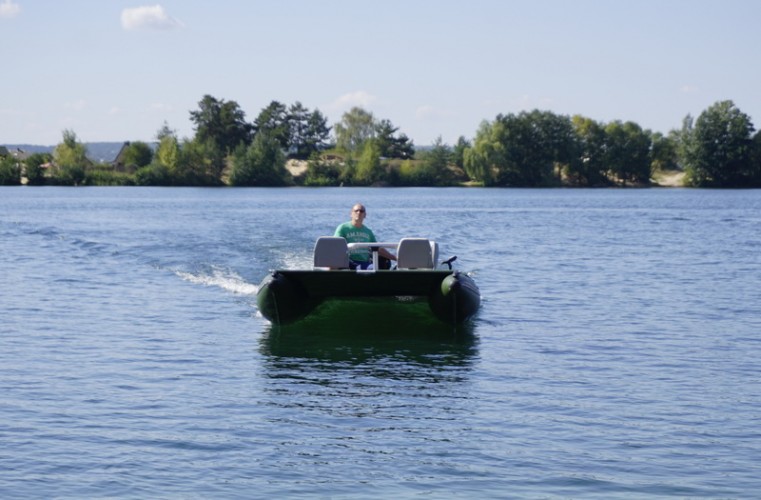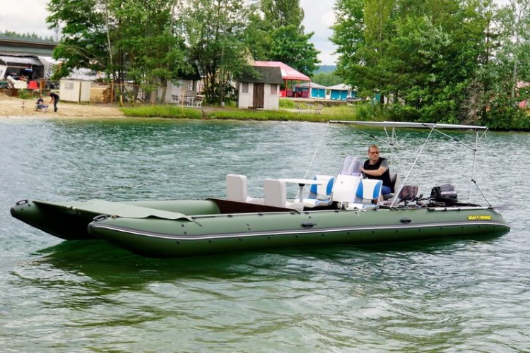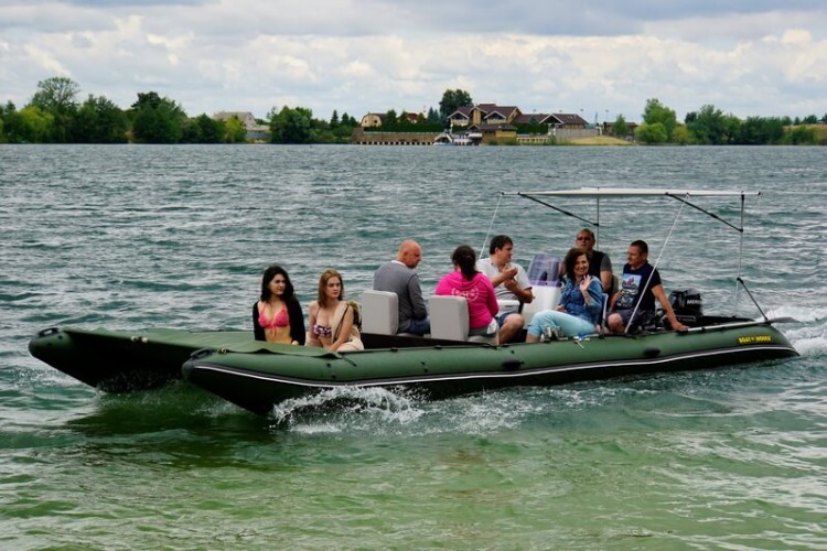 Due to its rigid construction, catamaran moves on protected from below, hydrodynamic balloons without touching the water surface and with minimal resistance. With 1L of gasoline you can travel more than 20 km.