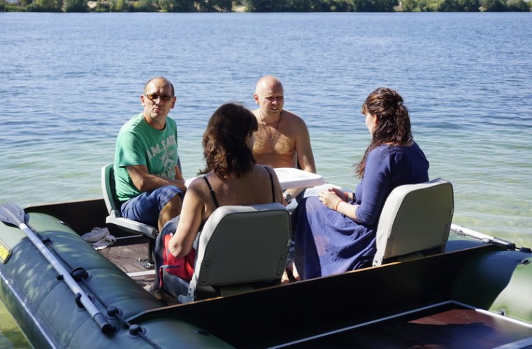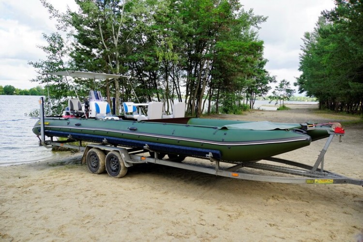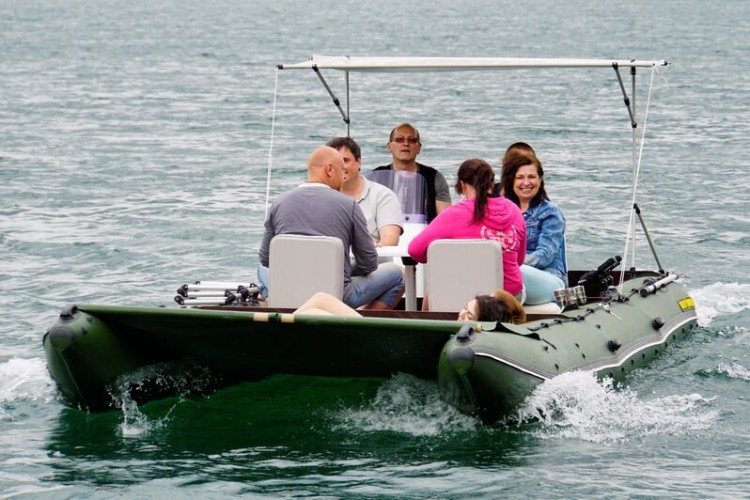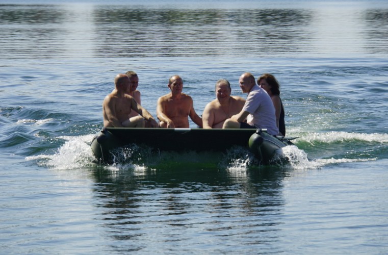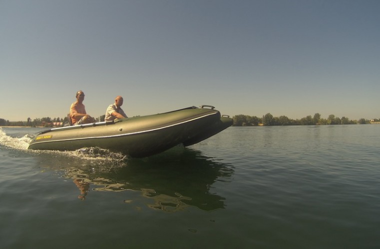 Catamarans Travel 631 in all respects is very good for fishing and hunting: excellent cross-country ability, excellent stability, economy, use of the entire speed range and self-draining cockpits. But the main thing is a smooth, non-sliding deck with a large area, which allows everyone to stay with great comfort, without hampering each other. The catamaran is going very easily and quickly. Pumping the main volume of air cylinders electric pump, in 20-30 minutes you will already be on the water. But if you have a lot of additional equipment, it is better to transport it on the carriage. Then you can install the engine with remote control, and the descent to the water will take only a few minutes.