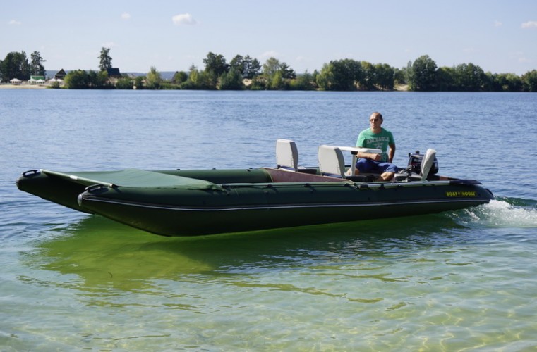 Catamarans TRAVEL - are the biggest inflatable boats manufactured by BOATHOUSE. They are made of five-layered german PVC fabric, marine plywood and aluminum. Very safe and reliable "frame" design, with protection of the balloons over the entire length, indicates the quality of the catamarans. These boats are great for travel in any water areas: from medium and mountain rivers to large water reservoirs and sea.