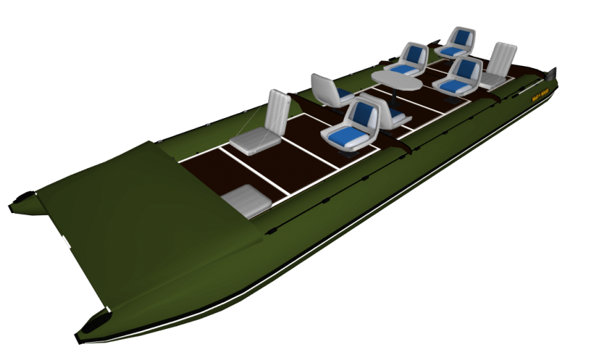Catamarans TRAVEL - are the biggest inflatable boats manufactured by BOATHOUSE. They are made of five-layered german PVC fabric, marine plywood and aluminum. Very safe and reliable "frame" design, with protection of the balloons over the entire length, indicates the quality of the catamarans. These boats are great for travel in any water areas: from medium and mountain rivers to large water reservoirs and sea.