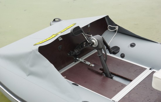 BOATHOUSE installed a bicycle drive for a boat and catamaran on a lightweight inflatable PVC catamaran, the SMART FISHER series. The 440th model is a two-seater pvc catamaran, designed for a comfortable walk or fishing together. The catamaran has two separate cockpits, separated by a transverse frame (bulkhead), each of which is equipped with ejection valves through which water entering the catamaran leaves.