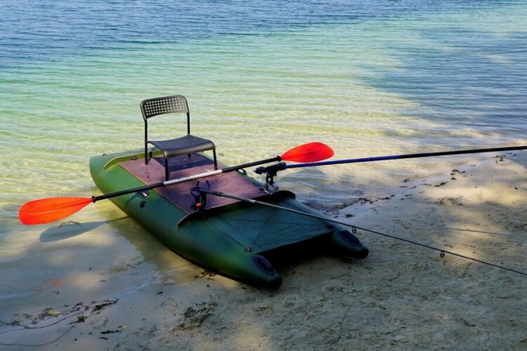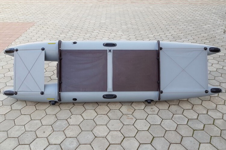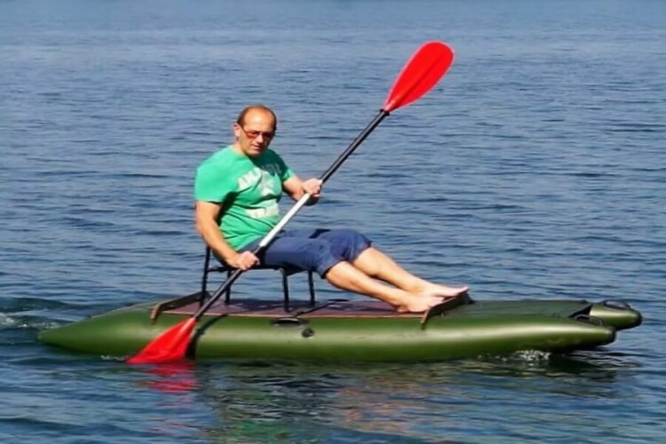 And you can put a chair with a backrest, several rod holders and an anchor and go fishing. Moreover, you can go to the most inaccessible places. If you combine half of the flooring and just sit in the middle, then the legs can be lowered into the water between the cylinders.